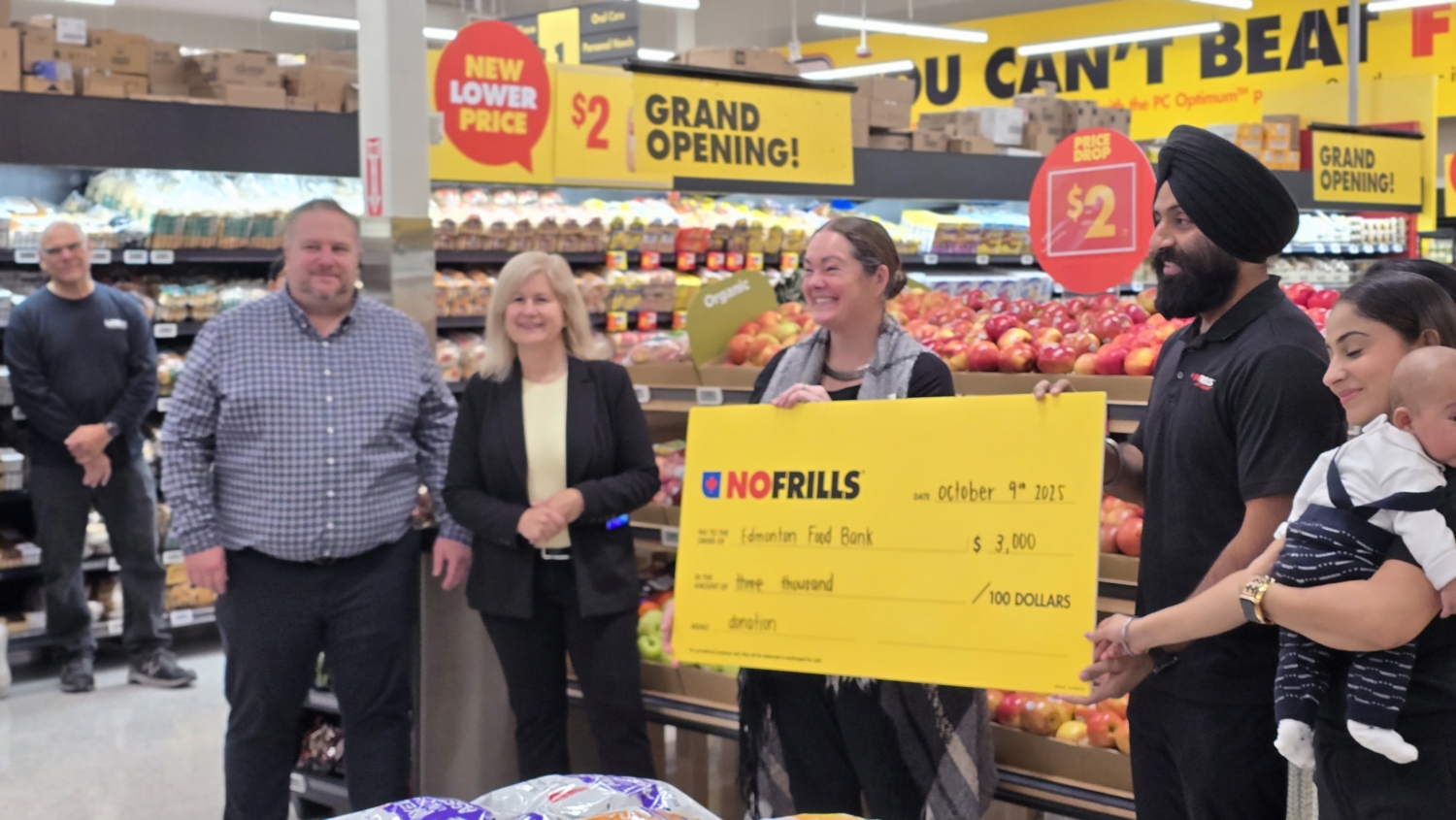 As part of their commitment to giving back, No Frills celebrated their grand opening with a donation to the Edmonton Food Bank, supporting local families and reinforcing their dedication to community care.